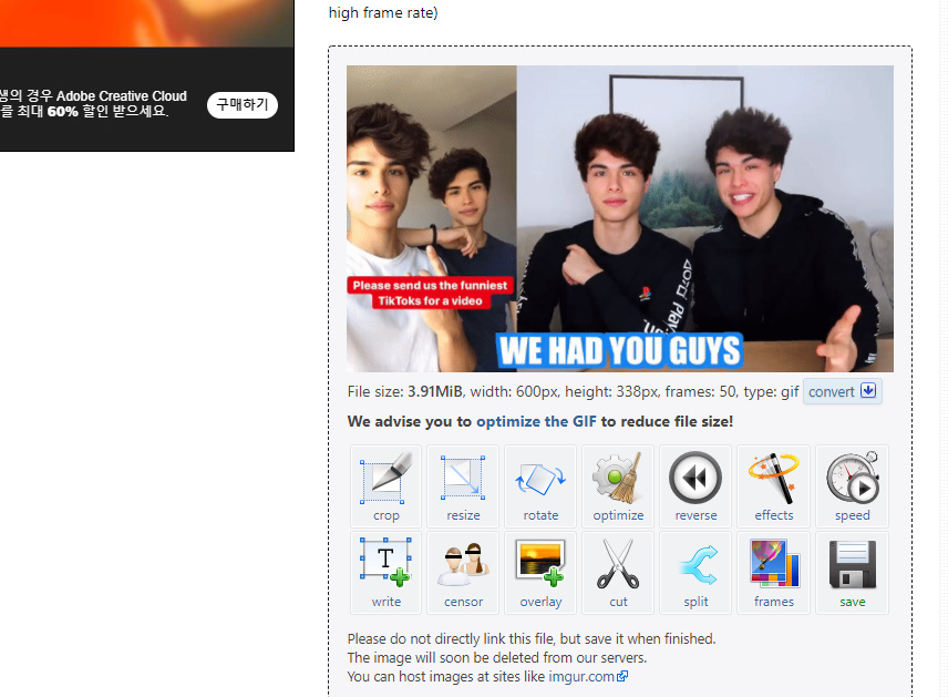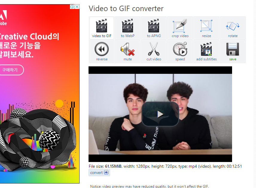 7. 시간이 조금 걸립니다. 기다리고나면 다음과같이 완성이 되어 GIF 파일로 변환이 됩니다.