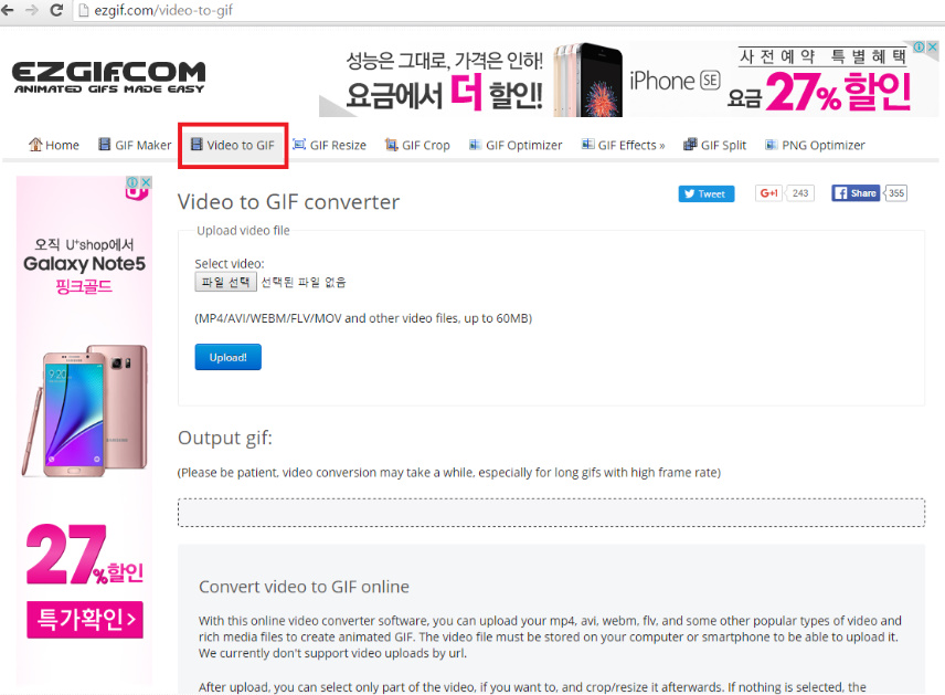 1. 먼저 http://ezgif.com/video-to-gif 사이트에 접속합니다.