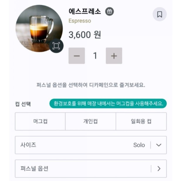 제일 저렴한 에스프레소나 아메리카노 숏사이즈를 선물하기 해 천원정도를 추가결제해여 드시는것이 좋습니다.