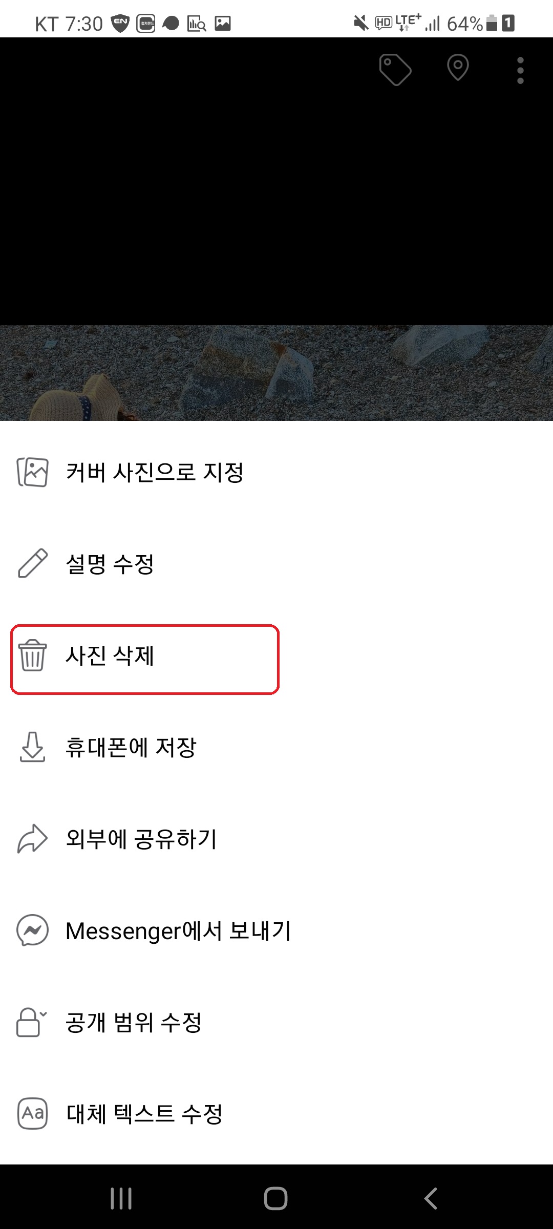 프로필 사진 보기로 이동하셨으면 위의 사진과 같이 순서대로 메뉴 선택, 사진 삭제 버튼을 눌러서