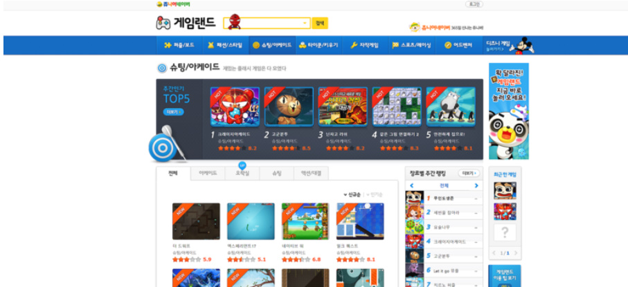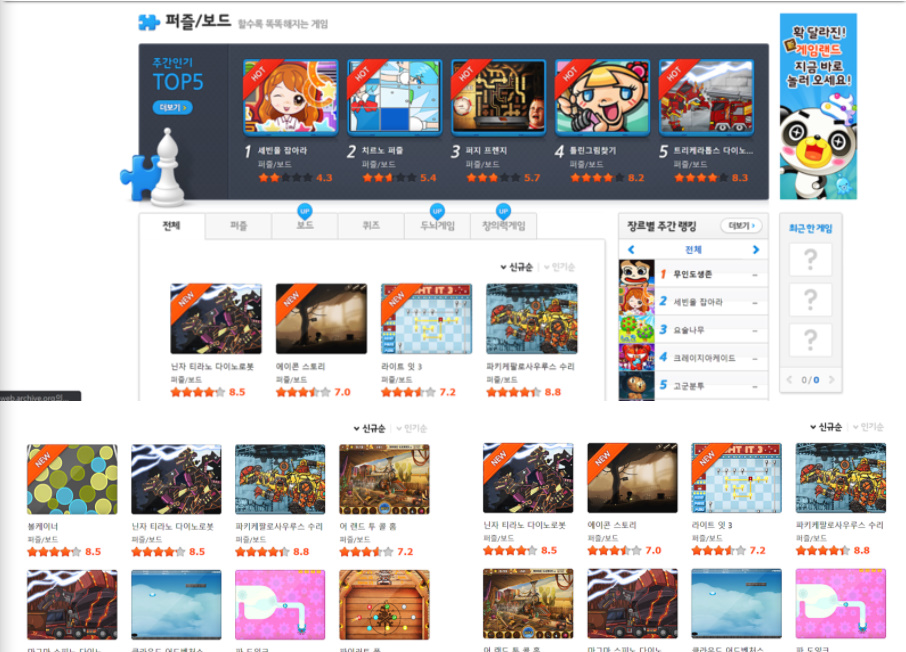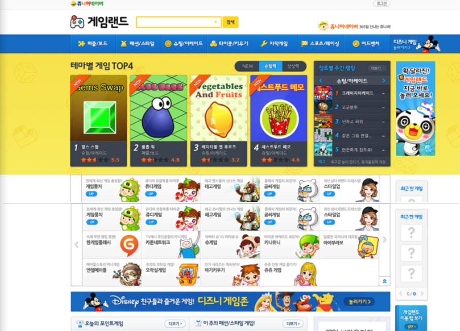 당시에 쥬니어네이버 게임랜드에서 큰 인기를 얻었던 게임들이 대부분 있었습니다.