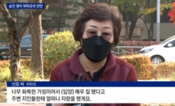 정인이가 입양되기 전까지 돌봐주시는 위탁모께서도 정인이에게 가족이 생겼을때 행복해 하셨을겁니다..