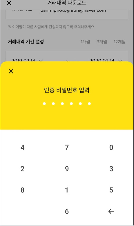 입출금 내역을 받아볼 이메일 주소를 입력해서 거래내역을 알고 싶은 기간을 설정해서 발송해주시면 됩니다.