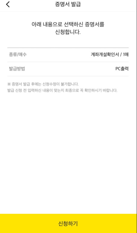 여기까지가 모바일에서 간편하게 확인용으로 카카오톡 통장사본을 발급받는 방법입니다.