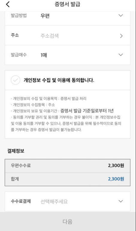 고객센터에서 증명서 발급 페이지로 이동하면 인증번호를 입력한 후에 각종 증명서를 발급 받을 수 있습니다.