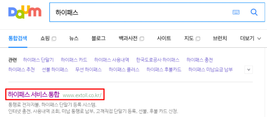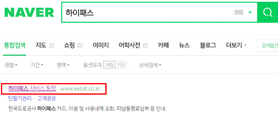 후불 하이패스 영수증 출력 및 사용내역 조회를 하기 위해서는 하이패스 서비스 통합 사이트에 접속을 하셔야 합니다. 네이버나 다음과 같은 포털 사이트에서 하이패스 라고 검색하면 쉽게 사이트에 접속이 가능합니다.