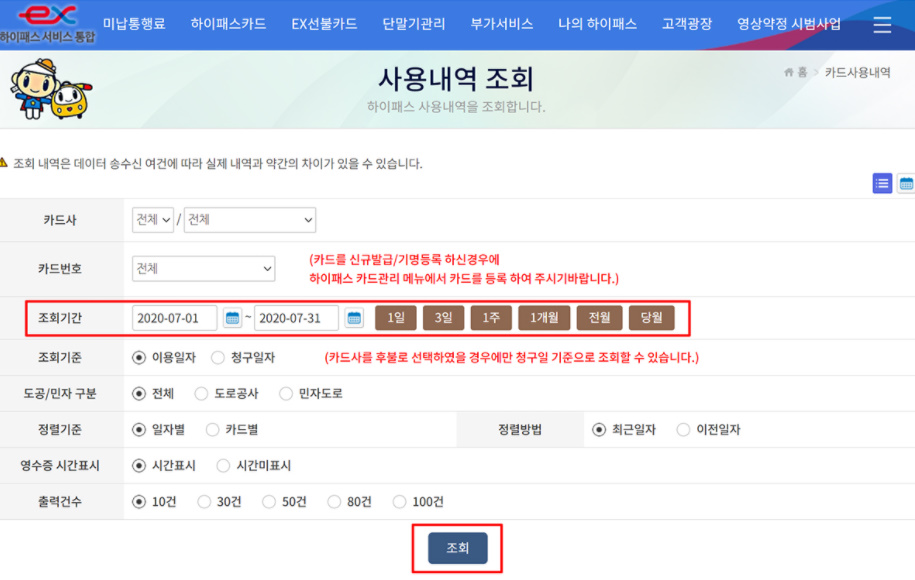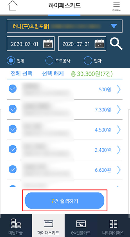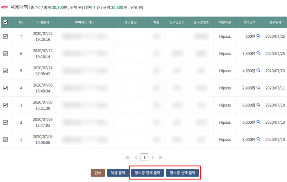 하이패스 영수증 출력 방법 및 사용내역 조회
