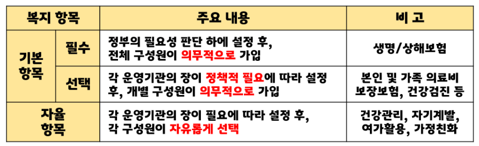 복지의 항목들은 기본항목과 자율항목으로 구성 되어있습니다.