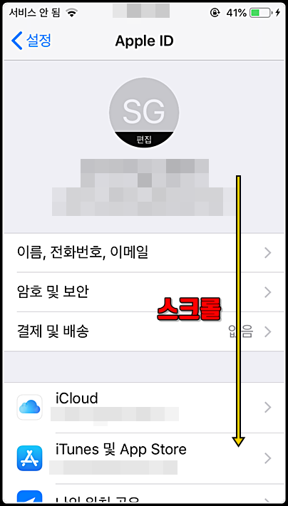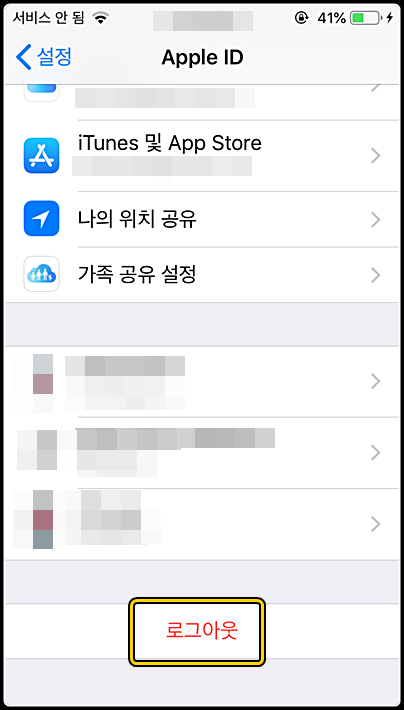 2. 아이클라우드 및 앱스토어, 아이튠즈 로그아웃 (휴대폰)