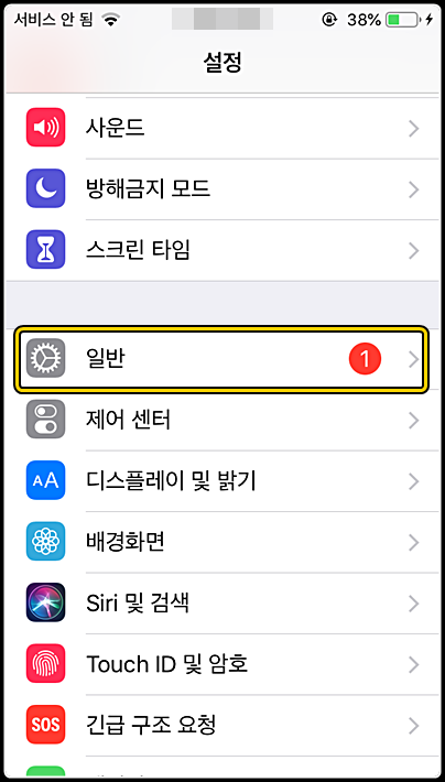 ▼ 설정 화면에서 '일반' 탭을 선택해주세요.
