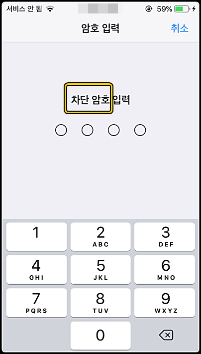 ▼ 다음으로, 차단 암호입력. 차단 암호는 위의 암호와는 다른 암호입니다. 잘 기억해보세요. 저는 네자리수로 입력했습니다.