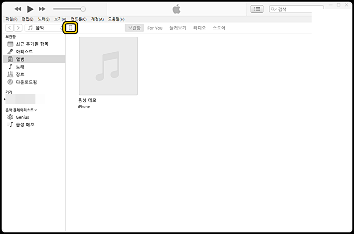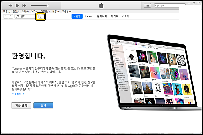 ▼ 먼저, 컴퓨터와 휴대폰을 USB로 연결 후 아이튠즈(iTunes)에 로그인합니다. 그 다음, 상단의 휴대폰 아이콘을 클릭해주세요.