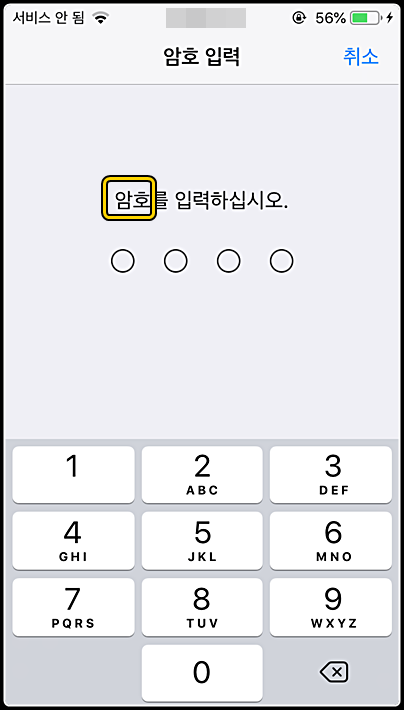 ▼ '암호'를 입력합니다. 저는 네자리로 해뒀었습니다.