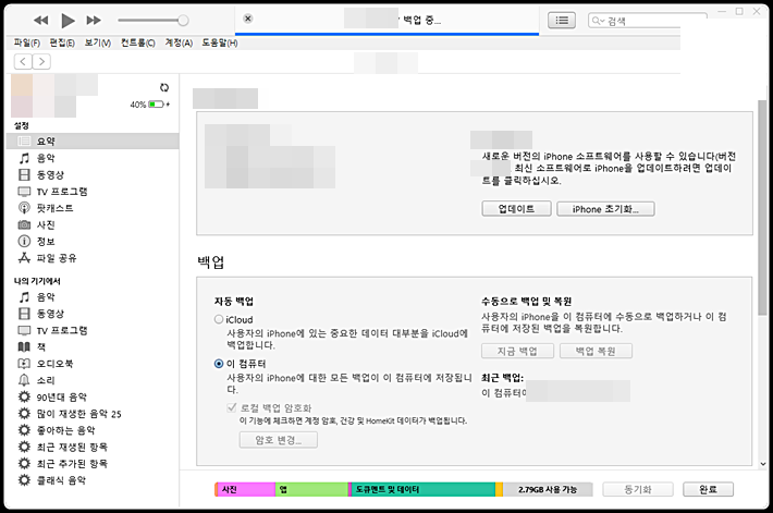 ▼ 열심히 백업을 하고 있네요. 백업이 완료되면 종료해주시면 되겠습니다. 컴퓨터로 하는 일은 여기까지.
