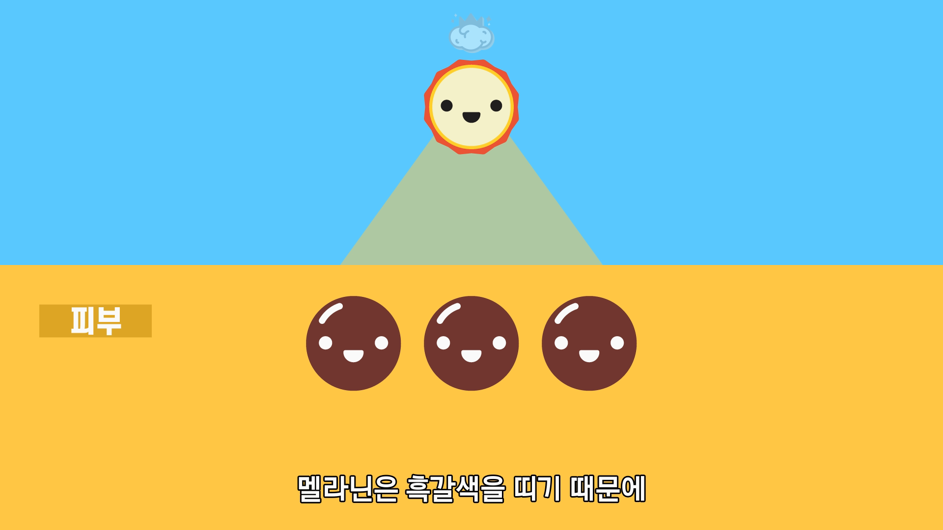 그래서 햇빛을 많이 받으면 피부가 타 까맣게 되는 것이죠