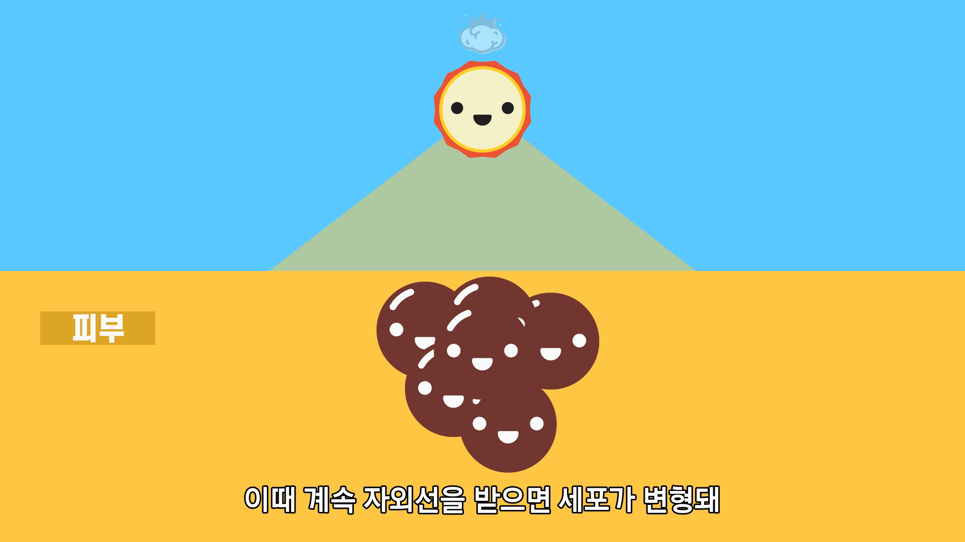 이때 계속 자외선을 받으면 세포가 자외선에 의해 변형이 일어나고
