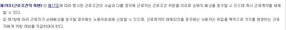 또한 일반 근로계약서에 명시된 근로조건이 사실과 다를 경우에는 근로자는 근로조건 위반으로 손해 배상을 청구 할 수 있으며 시 근로계약을 해제 할 수 있습니다.