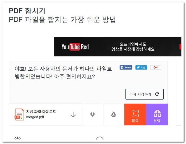 ▲ PDF 병합 버튼을 누르고 잠시 기다리면 결과를 알 수 있는데요...