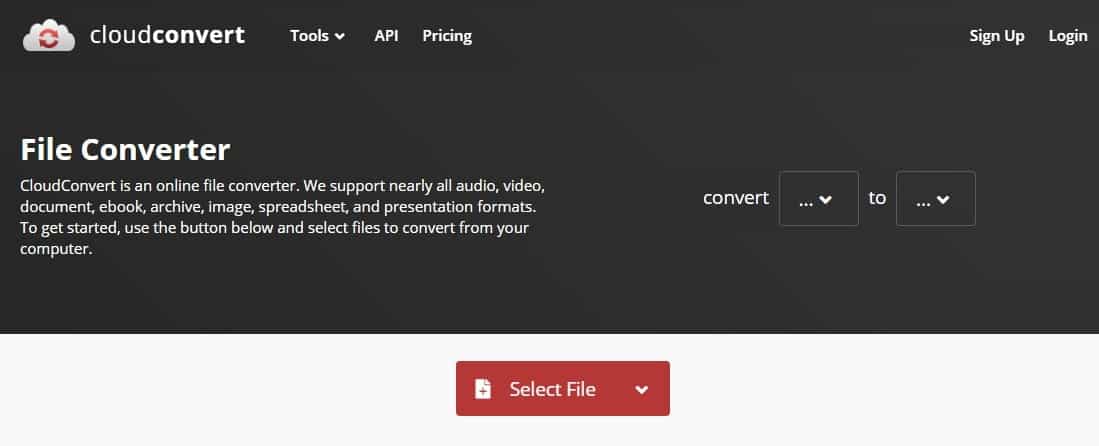 Compress Merge Capture Website Create Archive Extract Archive Convert +200 Formats Supported CloudConvert is your Swiss army knife for file conversions. We support nearly all audio, video, document, ebook, archive, image, spreadsheet, and presentation form