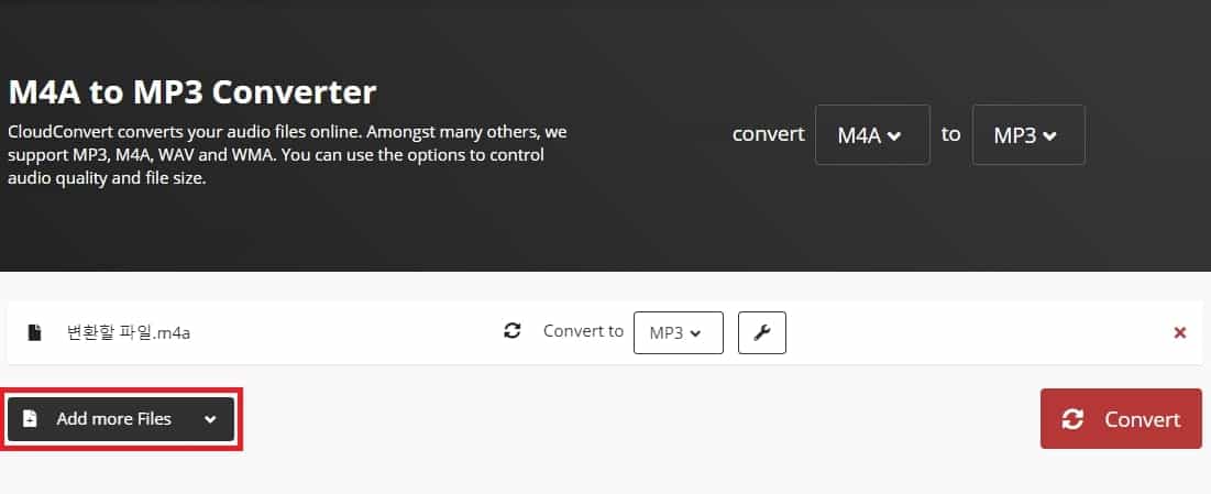 “Add more Files”를 통해 여러 파일들을 한꺼번에 변환시킬 수도 있습니다.