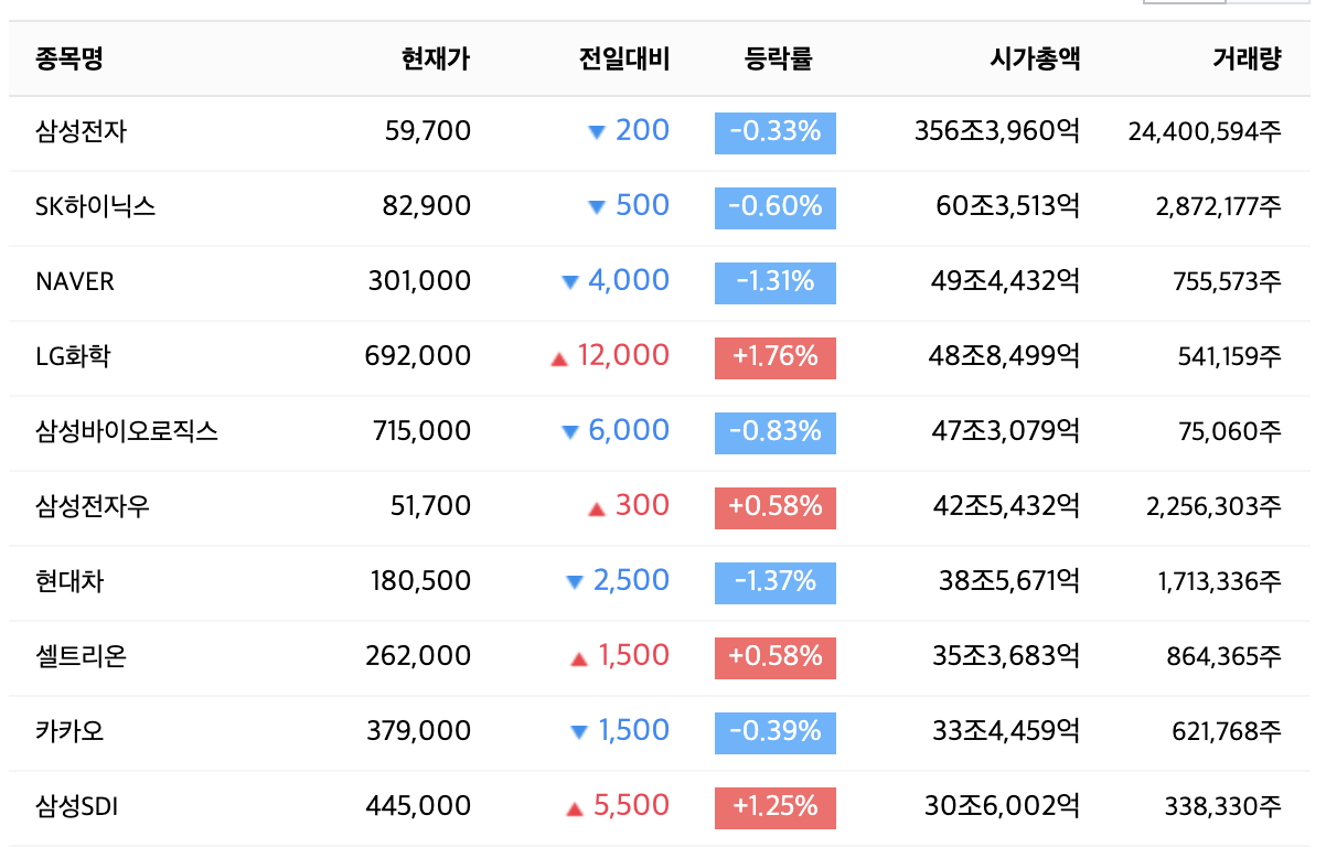 이런 까다로운 조건 때문에 오래 사업을 지속한 대기업들이 코스피 시장에 등록되어 있음을 알 수 있습니다.