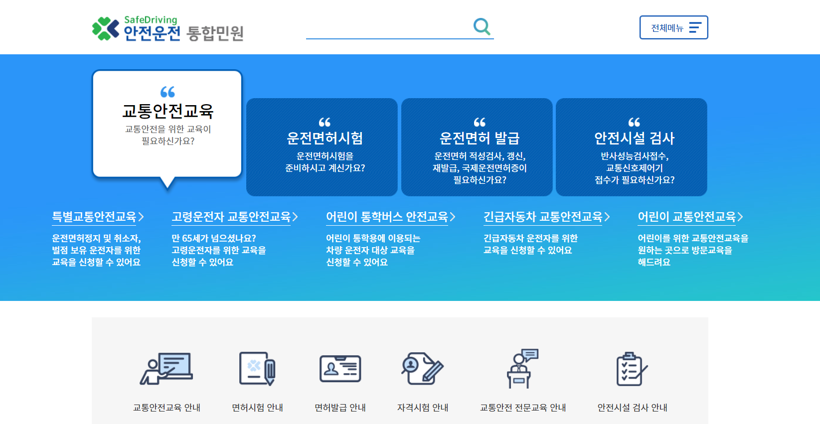 ▶ 안전운전 통합민원 홈페이지 바로가기 : https://www.safedriving.or.kr/main.do