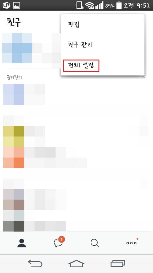 다음으로 팝업되는 메뉴창에서 "전체설정"메뉴를 선택해주세요.