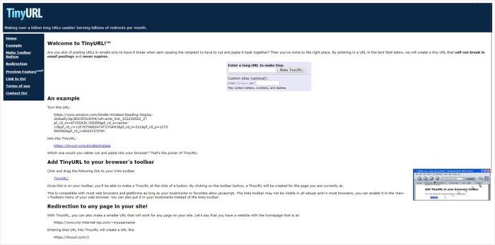 로그인하지 않고 무료로 사용할 수 있는 URL 단축 서비스 TinyURL 입니다