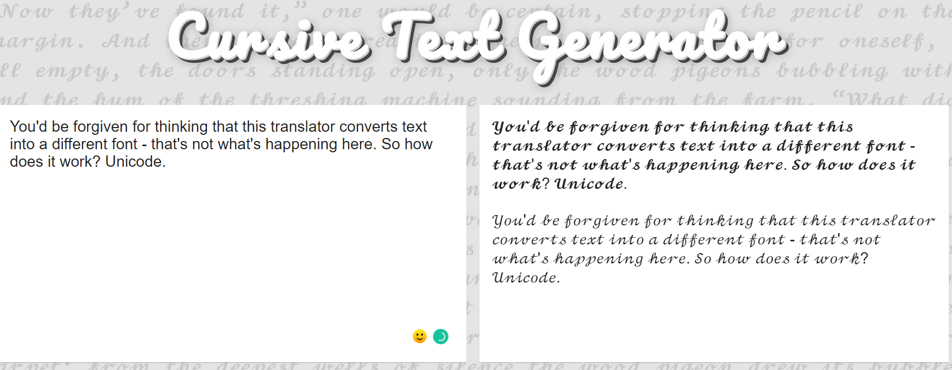 Cursive Text Generator (𝓬𝓸𝓹𝔂 𝒶𝓃𝒹 𝓹𝓪𝓼𝓽𝓮) ― LingoJam