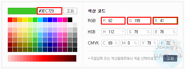 12. RGB 값을 입력한 뒤 색상 코드를 확인합니다.