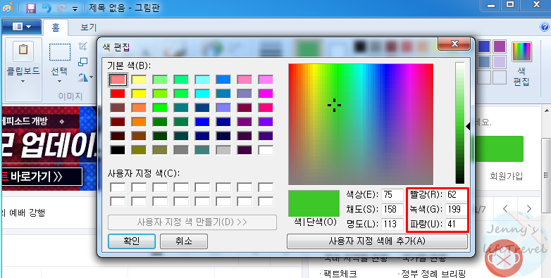그림판으로 구해낸 RGB 값으로 색상 코드 찾기가 가능합니다.
