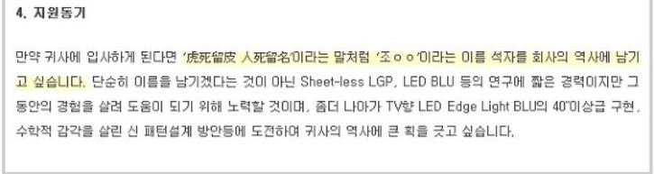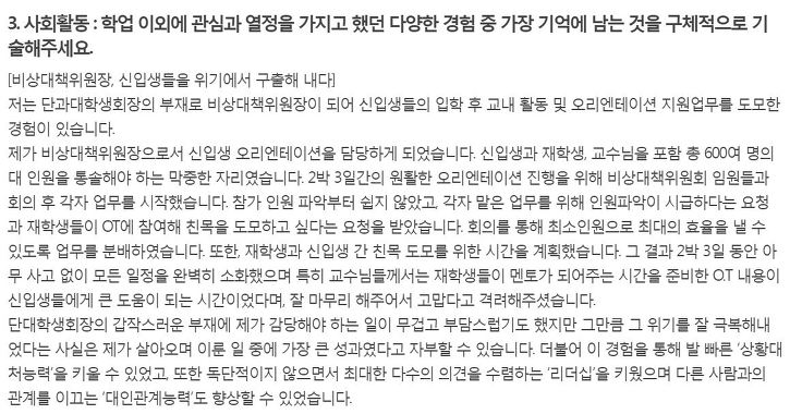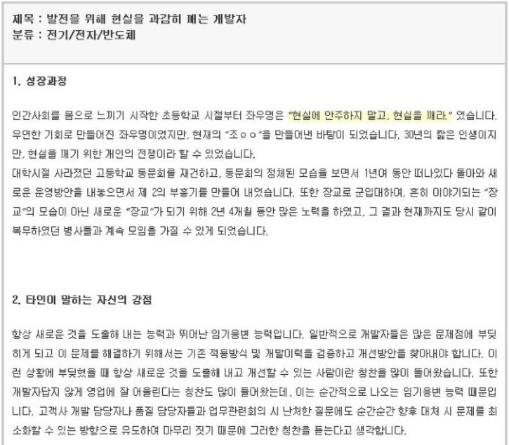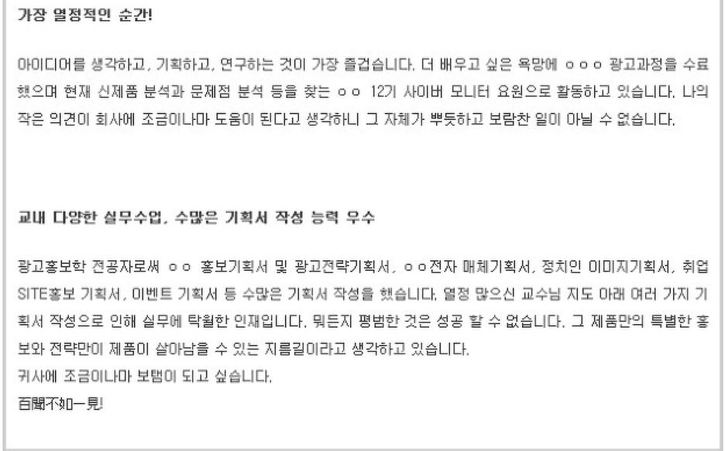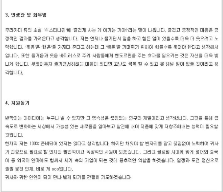 자기소개서 잘 쓴 예에서의 보이는 점