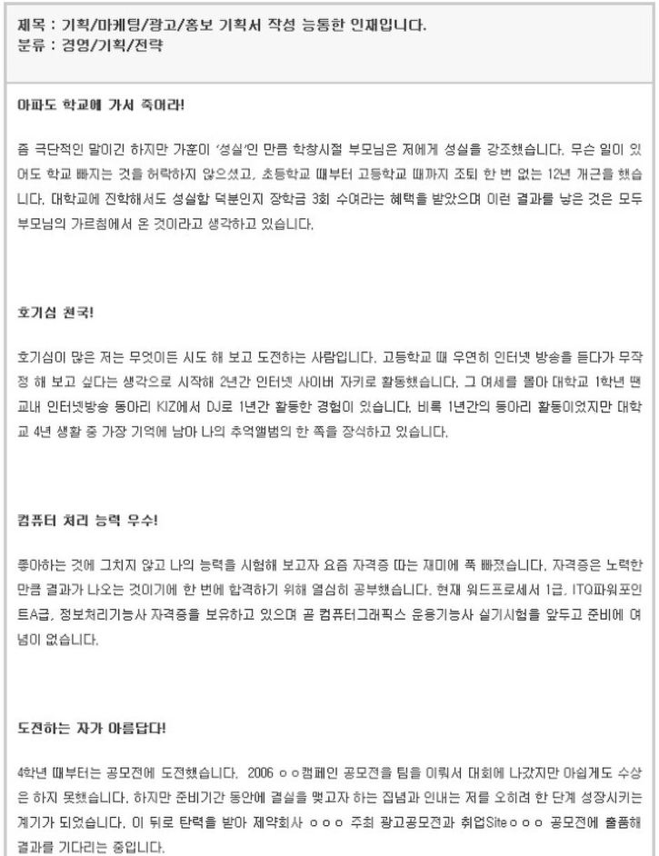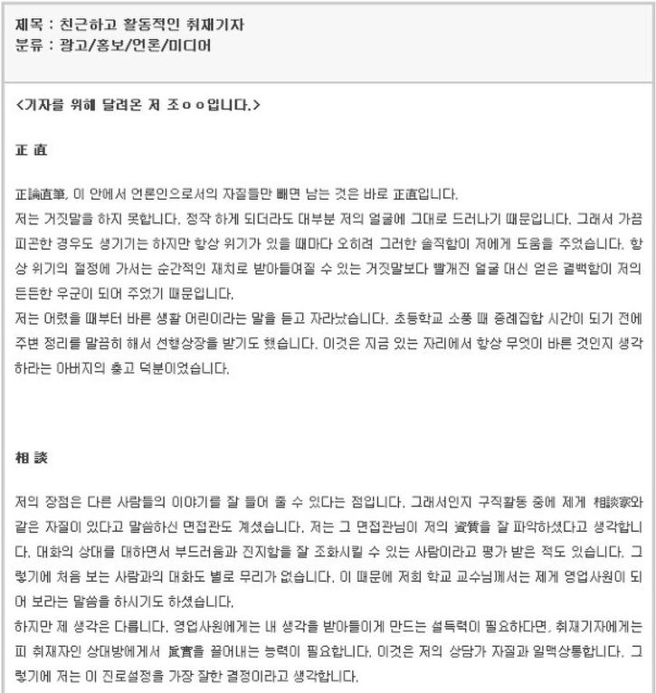 자기소개서 잘 쓴 예를 보면, 보통