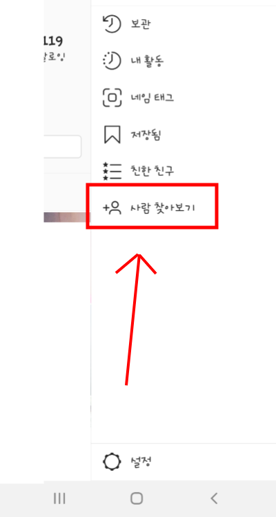 메뉴를 클릭한 후에 사람 찾아보기를 들어가 줍니다. 가장 아래에 있습니다.