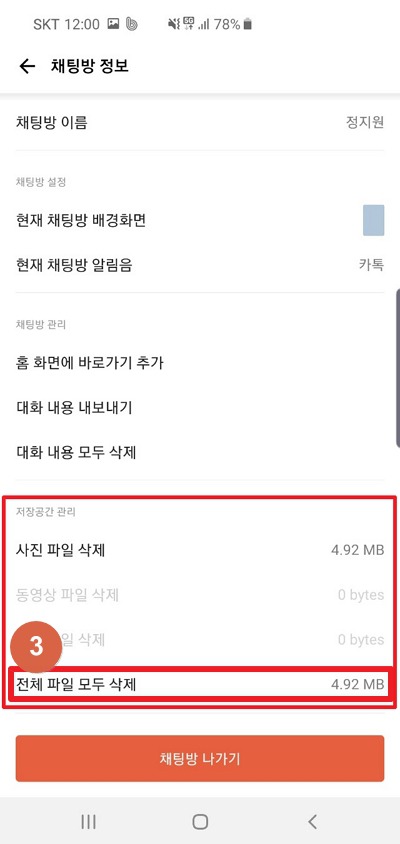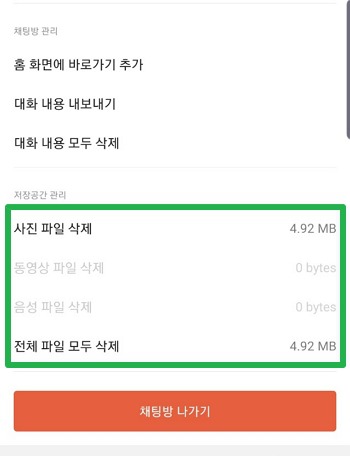 카카오톡 대화방 용량 줄이기