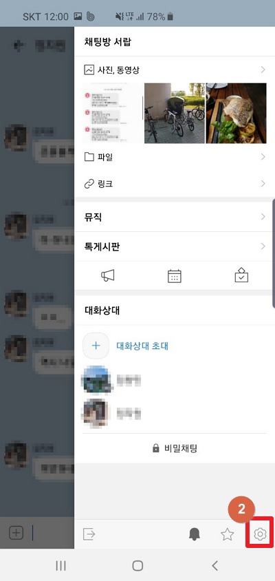 2) 메뉴가 열리면 오른쪽 하단의 톱니바퀴모양 '설정' 버튼 선택하세요!
