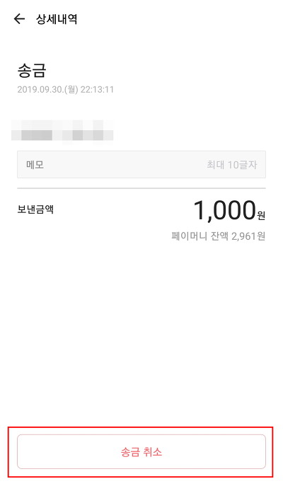 ▶카카오페이 송금 취소하기