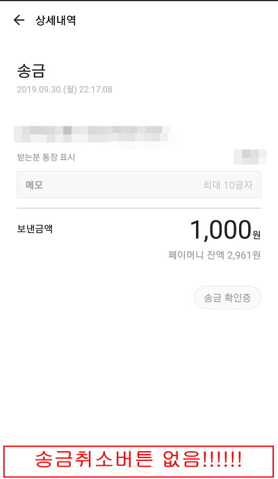 3. 계좌로 송금한 돈은 송금취소가 안됨
