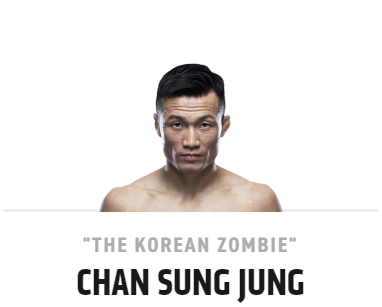 정찬성: 한국인 최초 타이틀전을 치른 파이터로서 아쉽게도 타이틀전은 실패였지만 공익 근무 복무 후 화려환 복귀전을 치르며 현재 상승세를 타고있는 최고의 파이터입니다. 정찬성 선수는 페더급 랭킹 4위에 선수로 '코리안 좀비'라는 별명을 가지고 있으며 해외 팬들도 무수히 많은 파이터입니다. 그리고 소속사가 특이한데요. 소속사는 AOMG입니다. 그의 모든 경기는 재밌다는 말이 나올 정도로 항상 최고의 경기를 보여주며 실력 또한 최고인 선수로 대한민국을 대표하는 파이터라고 할 수 있습니다.