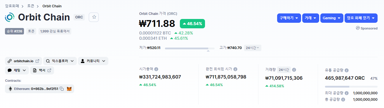 오르빗체인 코인 정보, ORC Coin, Orbit Chain, 다중 자산 크로스체인 플랫폼, 자산의 이동과 검증, 금융 프로젝트 개발 특화 코인, 카카오 클레이튼과 관련성, 상승이유, 특금법 때문에?