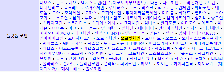*오르핏체인 코인은 다음 코인들과 플랫폼 코인으로 분류되고 있습니다.