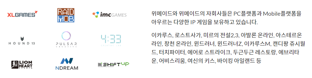 위메이드는 미르에 전설 등으로 돈을 많이 번 회사이며, 추가로