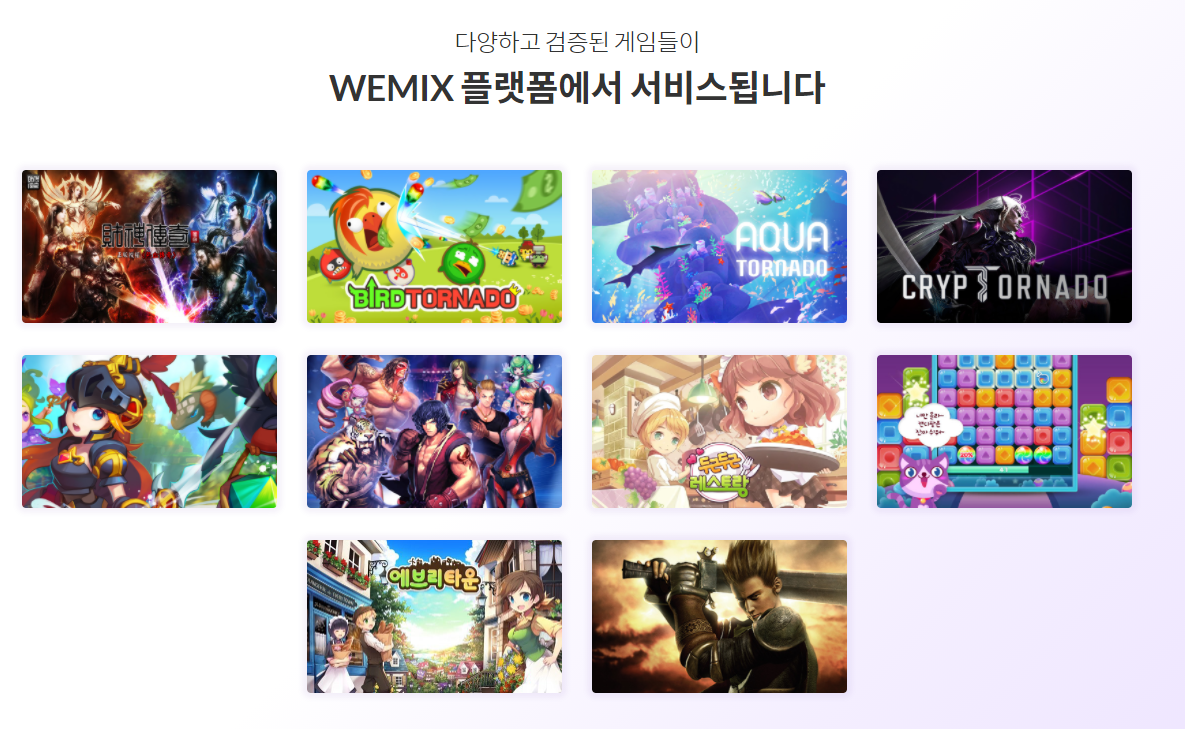 해당 게임들에 위믹스가 연동될 예정 혹은 이미 연동되었다고 합니다.