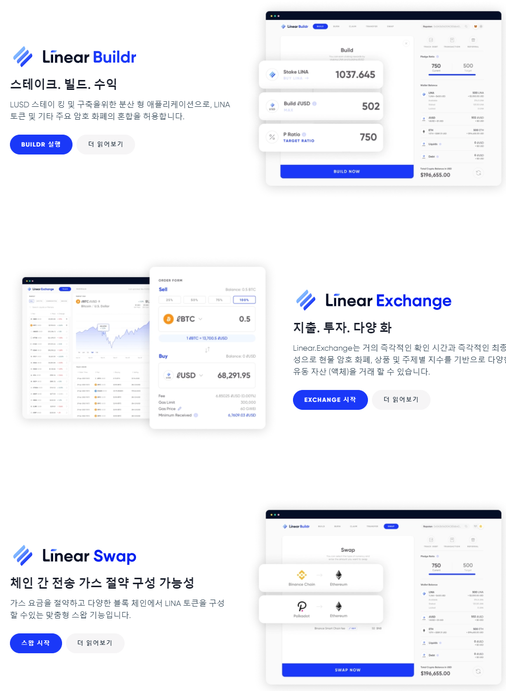 리니어파이낸스 블록체인은 이용하면 암호화폐 코인의 저장, 대여, 사용, 전송, 이자 받아먹기 등등 요런 엄호화폐 금융 생태계에서 열일을 꿈꾸는 녀석입니다.