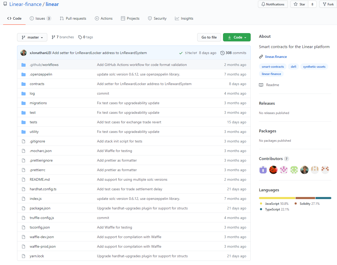 리니어 파이낸스 깃허브 소스코드 github.com/Linear-finance