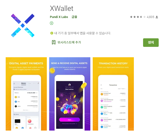 펀디엑스와 지원하여 개발된 XWallet 가상화폐 지갑 앱