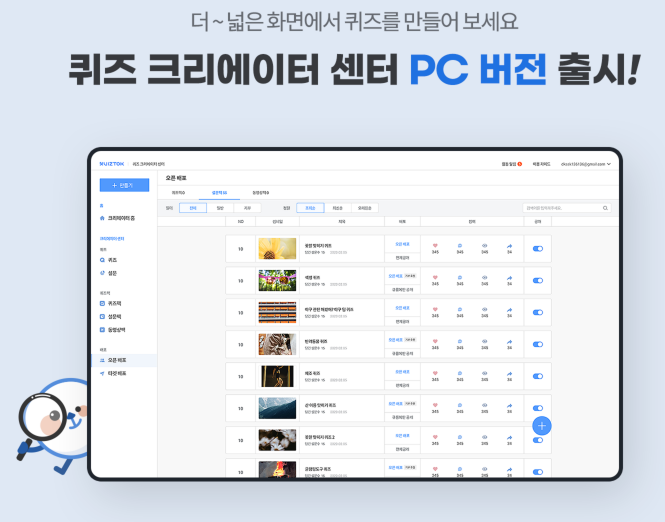 퀴즈 작성 PC버전도 지원
