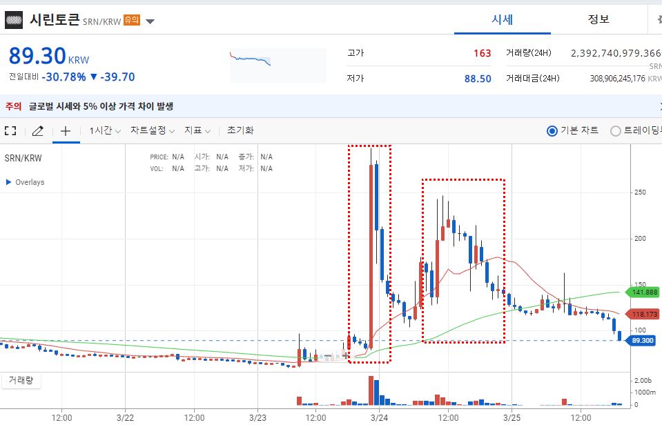유의종목이 된 다음부터 코인 지갑, 외부 출금이 되지 않으며, 해당 거래소 내에서만 거래가 유도되기 때문에 장난질, 돈 많은 누군가가 시세를 흔들 수 있는 좋은 조건이 됩니다.