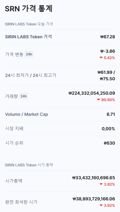 금일 낙폭이 가장 큰 코인중 하나 시린토큰