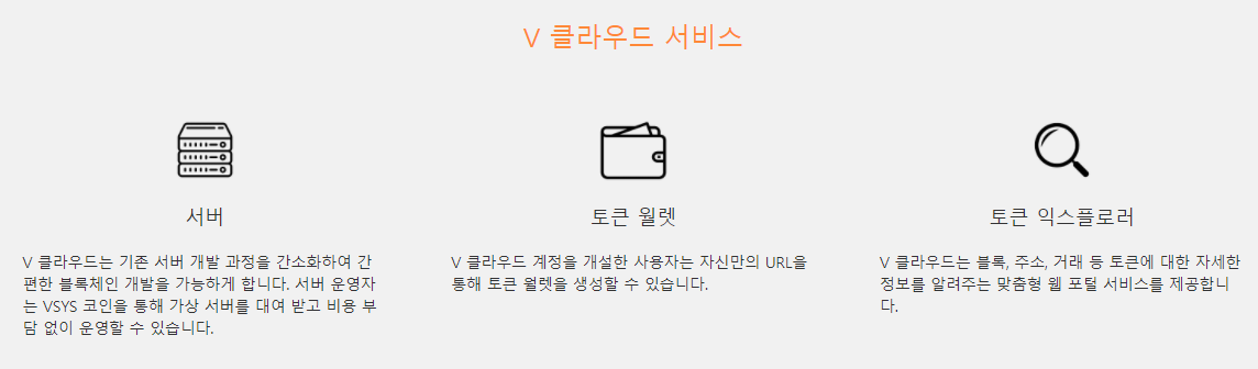 브이 시스템즈의 V-Cloud는 블록체인 기술에 알맞게 세워진 플랫폼으로써 토큰 지갑, 브라우저 및 클라우드 서버 관리 등 블록체인과 가상자산 프로젝트의 기술 기능에 맞춘 사전 구축 서비스를 제공합니다.